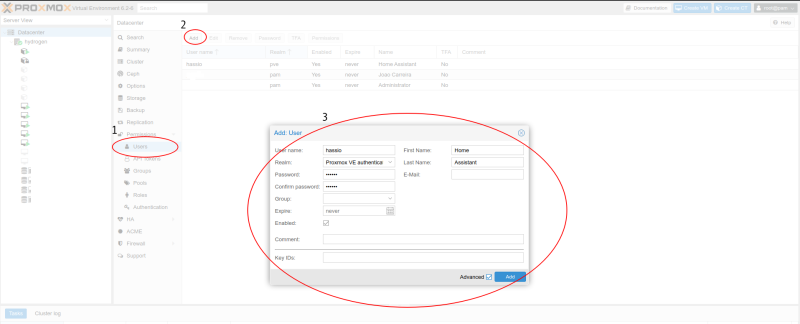 Para começar deve seguir os passos da Integração Oficial do Proxmox no Home Assistant. Resumidamente são estes os passos: